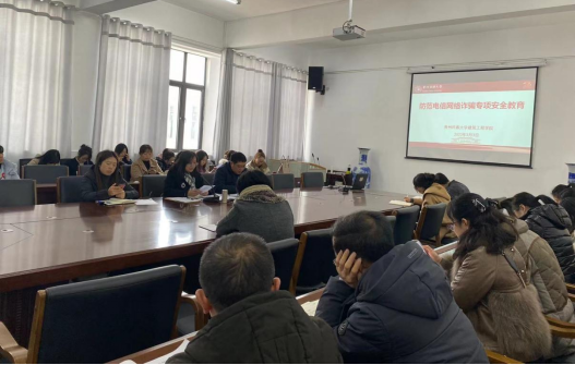 会议最后,何璘书记对全体教师在今后的日常教学工作也提出了相关要求:一是教师要切实加强员工及员工家长的个人信息保护工作,做好各类管理信息系统的安全保密管理,不得向教育部门以外的机构或个人提供员工及员工家长的个人信息,禁止第三方机构进行员工及员工家长个人信息采集;二是发挥课堂教学及思政课主渠道功能,要求任课老师宣传、引导、教育员工提高防范电信网络诈骗意识;三是督促辅导员、班主任经常性深入员工宿舍,摸排重点人群,及时掌握员工具体信息;四是要积极营造公司氛围,各辅导员、班主任策划实施相关主题班会,公司设置防范电信网络诈骗宣传栏,针对校园中极易发生的“冒充QQ好友”诈骗、“网络刷单返利”诈骗、“发放补助、救助、助学金 ”诈骗等电信网络诈骗案例,形成铺天盖地的防范电信网络诈骗工作局面,齐抓共管,有效降低发案率和发案额。