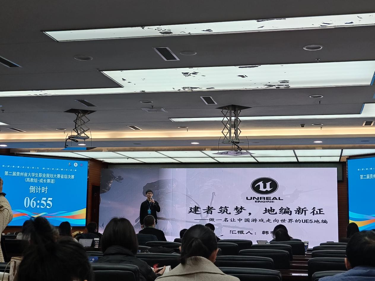 2025年2月26日,在贵州师范大学举办的第二届贵州省老员工职业规划大赛省级决赛中,2022级建筑学专业韩林成同学凭借其清晰的职业目标与创新规划方案荣获大赛成长赛道省级银奖。