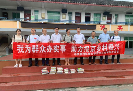 捐赠活动结束后,报京乡党委书记何洪道、报京乡乡长姚伦权以及yl23455永利驻村工作队队长高鑫来到报友村,与建工公司何璘书记一行、王家武主席和驻村第一书记牟勇忠,共同乘车前往报京中心小学捐赠图书。